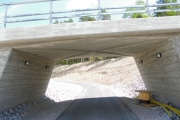 Gång- och cykelbanans passage av avfartsrampen söderifrån sker planskilt, här sett från en plats under trafikplatsens östra bro. (Bild-ID: 55-0180) |