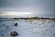 Almungevägen, vägskälet mot Danmark. Förutom de grävarbeten som syns nära i bild kan man nu också se den nya motorvägens sträckning i form av en jordvall borta vid horisonten. (Bild-ID: 55-0005) |
