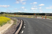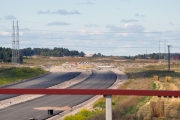 Rondellbygget vid Lv288, anslutningsvägen till trafikplats Bärbyleden används nu för byggtrafik, samt för trafik till gården Ytterbacken. (Bild-ID: 55-0261) |
