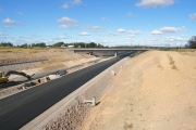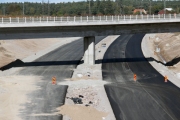 Den nya motorvägen passerar i en mjuk sväng under järnvägsbroarna för Ostkustbanan. (Bild-ID: 55-0267) |