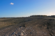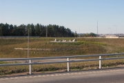 Bullerskydd i form av höga jordvallar mellan motorvägen och Slavsta. Vy söderut. (Bild-ID: 55-0302) |