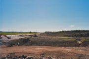 Från samma plats som föregående bild, men nu vy längs bygget i södergående riktning ner mot trafikplats Bärbyleden. Vaksala kyrkas torn kan skymtas vid horisonten. (Bild-ID: e4-0073) |