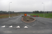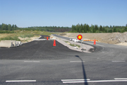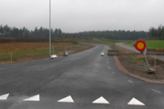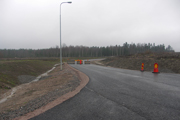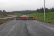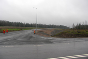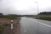 Av- och påfart på östra sidan motorvägen vid trafikplats Björklinge. Till vänster avfart för trafiken söderifrån och till höger påfart för trafik norrut på motorvägen. (Bild-ID: e4-0436)