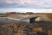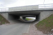 Vägportar vid Kumla utefter den gamla sträckningen av Lv282. Den västra vägporten är färdiggjuten och är något bredare på sydsidan för att få plats med avfarten till den näraliggande trafikplats Kumla. (Bild-ID: e4-0067) |