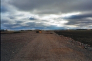 Vy över vägbygget på fältet sydost om Slavsta. (Bild-ID: e4-0011) |